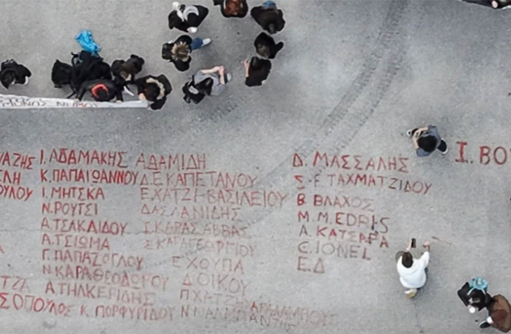 Προς τιμήν των θυμάτων, κάποιοι ξεκίνησαν να γράφουν με κόκκινη μπογιά τα ονόματα των 57, όπως ακριβώς έχει γίνει και στο κέντρο της Αθήνας, έξω από τη Βουλή, μπροστά στον Άγνωστο Στρατιώτη.