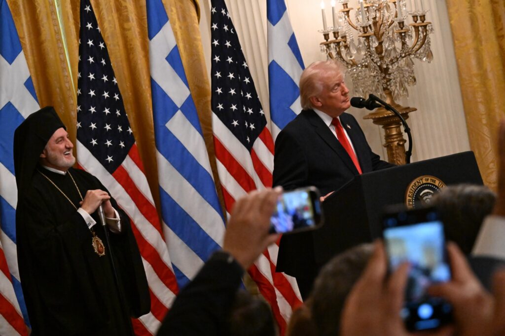 Πριν από την ολοκλήρωση της εκδήλωσης, ο Αρχιεπίσκοπος Ελπιδοφόρος επιχείρησε μια σύντομη αναφορά με χιούμορ, λέγοντας ότι «όλοι αναρωτιούνται τι θα σας προσφέρω φέτος», υπενθυμίζοντας ότι την προηγούμενη χρονιά είχε προσφέρει στον πρόεδρο Τραμπ τον σταυρό του Μέγα Κωνσταντίνου.