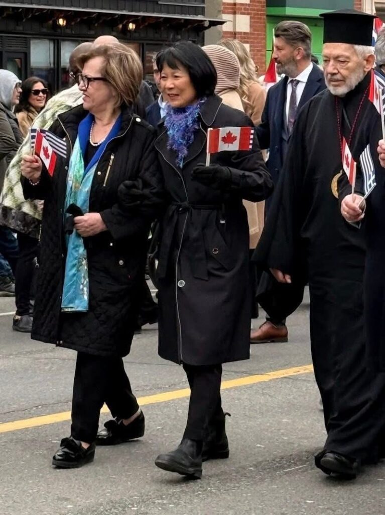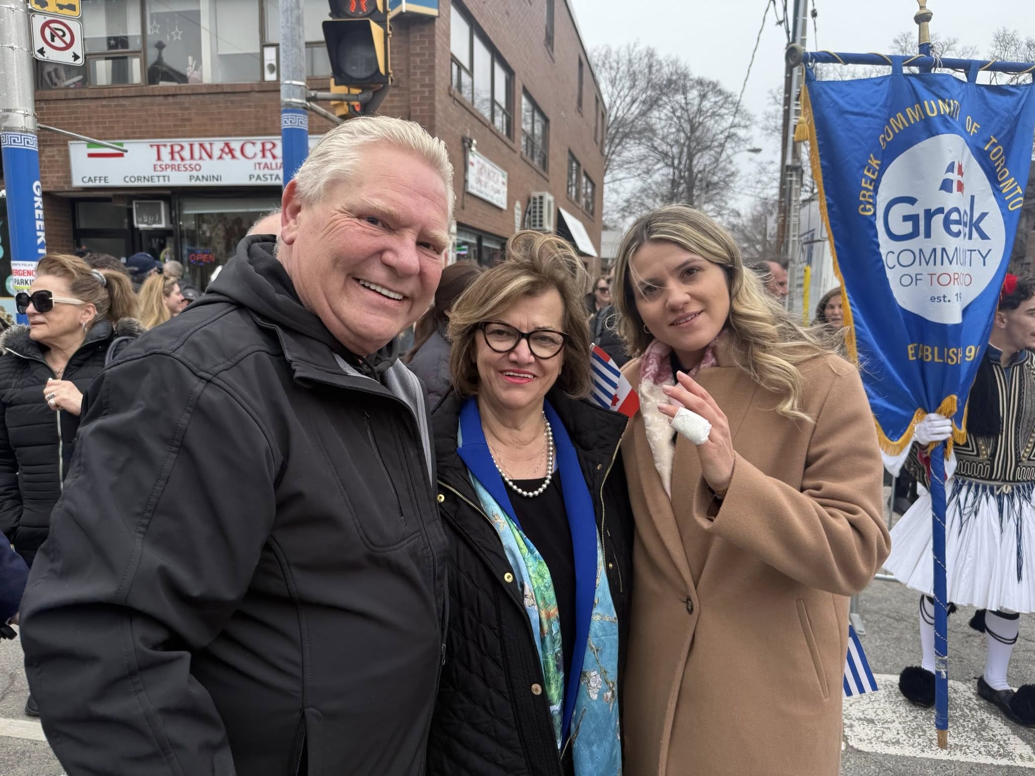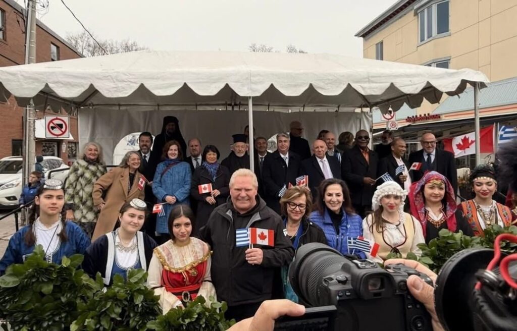 “Με ιδιαίτερη συγκίνηση και υπερηφάνεια πραγματοποιήθηκε και φέτος η παρέλαση της Ελληνικής Κοινότητας Τορόντο, στην οδό Ντάνφορθ, συνεχίζοντας μια παράδοση ενός αιώνα“, αναφέρει σε μήνυμα της η Πρόεδρος της Ελληνικής Κοινότητας Τορόντο Μπετυ Σκουτάκης (στην φωτογραφία με τον Πρωθυπουργό του Οντάριο Νταγκ Φόρντ, στην παρέλαση της Κυριακής).
