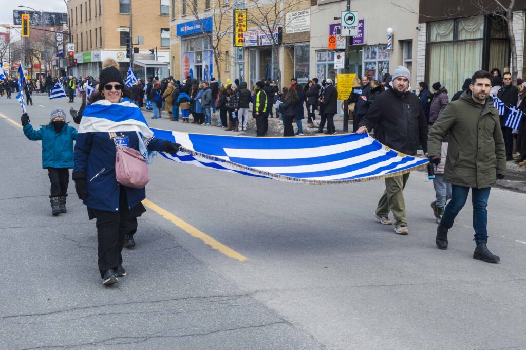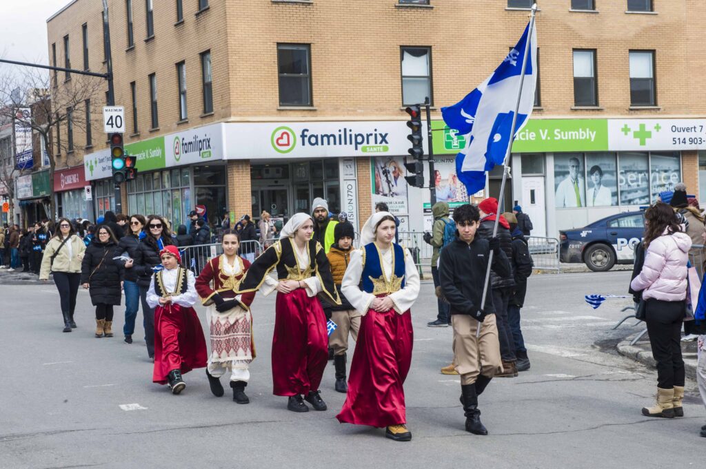Με χιλιάδες κόσμου στα πεζοδρόμια της οδού Ζαν Ταλόν στο Πάρκ Εξτένσιον -παρά το τσουχτερό κρύο- και με περίπου 2.500 συμμετέχοντες ολοκληρώθηκε το απόγευμα της Κυριακής η μεγάλη παρέλαση στο Μόντρεαλ για την 25η Μαρτίου.