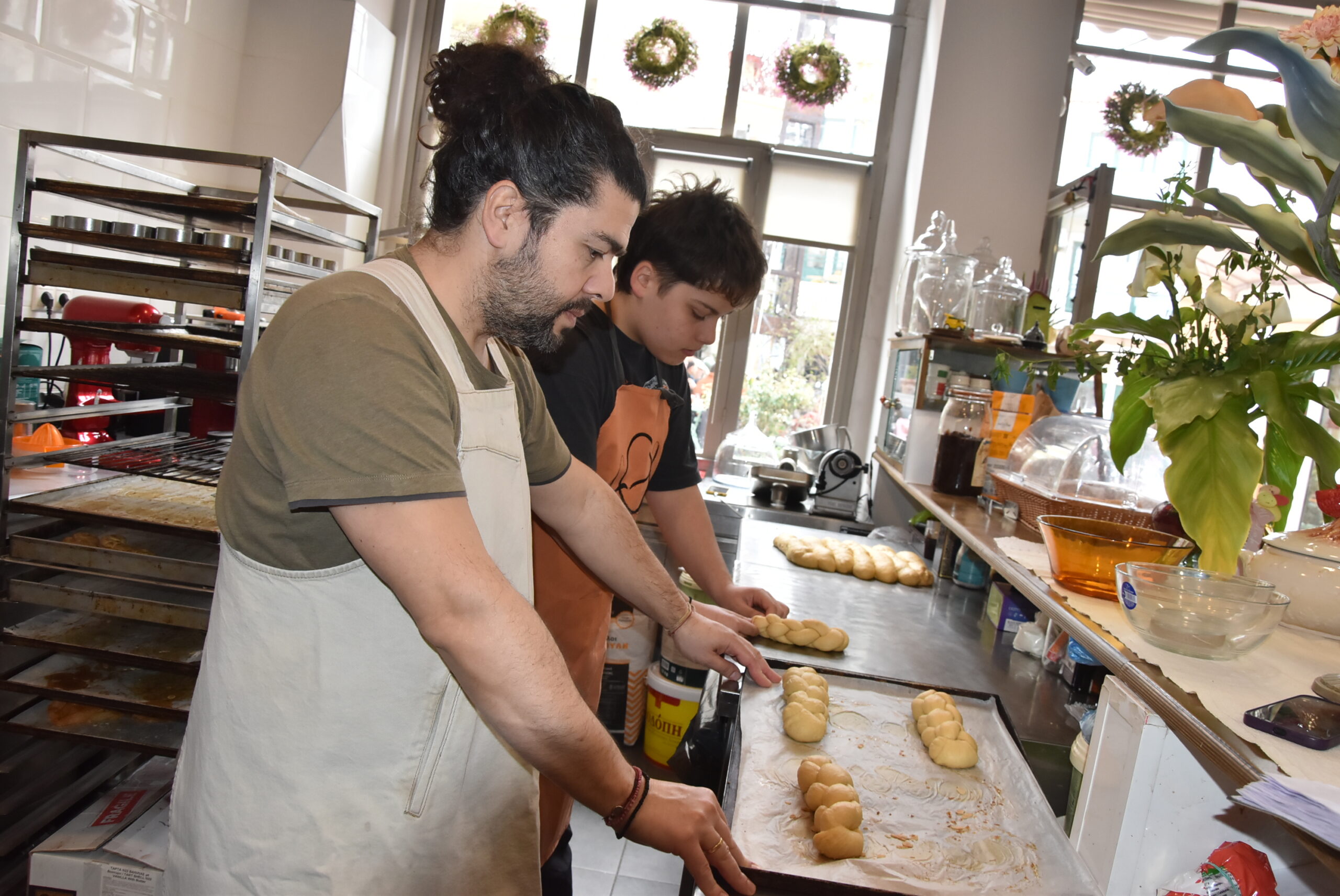 Στο ζαχαροπλαστείο πλέον δουλεύει και ο 18χρονος Κυριάκος, που σε δυο μήνες τελειώνει το Μουσικό Λύκειο της Μυτιλήνης. Στον πάνω όροφο του εργαστηρίου ζαχαροπλαστικής στα διαλλείματα της ενασχόλησης με τα γλυκά παίζει πιάνο. Ίσως στα διαλλείματα της ενασχόλησης με το πιάνο, να φτιάχνει γλυκά.
