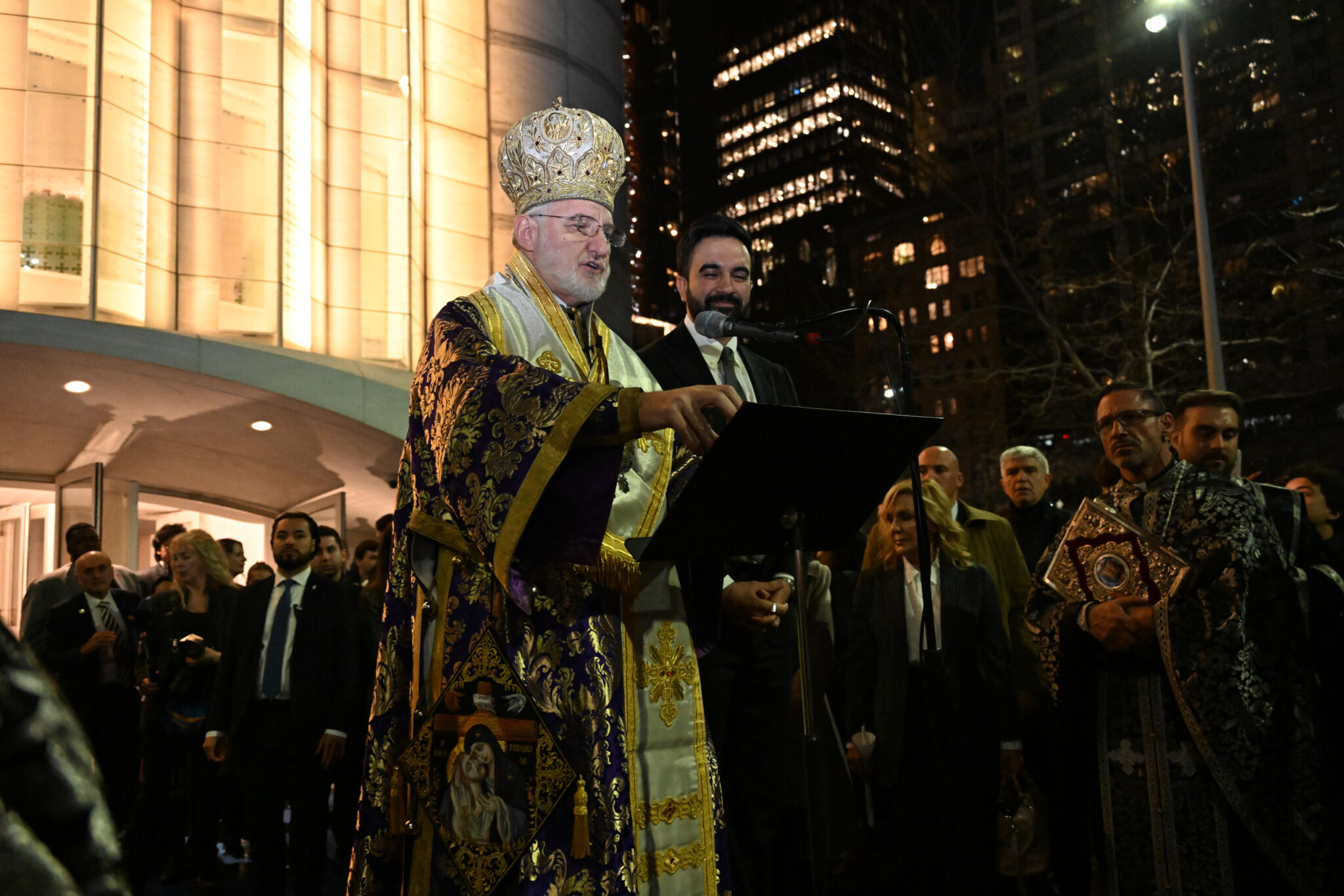Ο δήμαρχος Μαμντάνι χαρακτήρισε την Ελληνική Ορθόδοξη Εκκλησία και Εθνικό Ιερό του Αγίου Νικολάου ως ακρογωνιαίο λίθο της Νέας Υόρκης, «έναν λίθο που μας έχει διδάξει ότι η ανθεκτικότητα και η γενναιοδωρία θα βοηθήσουν να φωτίσουν το δρόμο», και ευχαρίστησε την ενορία «για την οικοδόμηση αυτού του όμορφου χώρου από αυτό που κάποτε ήταν στάχτες. “