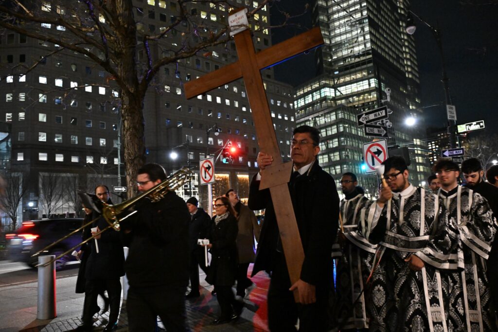 Οι πιστοί γέμισαν και αυτή τη Μεγάλη Παρασκευή την Ελληνική Ορθόδοξη Εκκλησία και Εθνικό Προσκύνημα του Αγίου Νικολάου στο World Trade Center της Νέας Υόρκης, καθώς ο Σεβασμιώτατος Αρχιεπίσκοπος Αμερικής κ.κ. Ελπιδοφόρος προέστη του Όρθρου του Μεγάλου και Αγίου Σαββάτου και της Ακολουθίας των Θρήνων στον Τάφο.