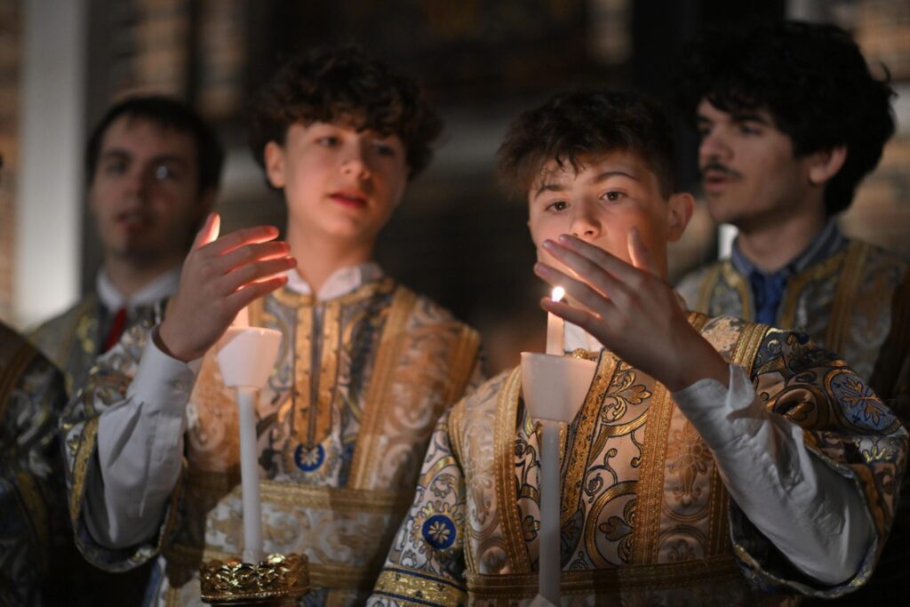 Πριν από την ανάγνωση του Ευαγγελίου, ο Αρχιεπίσκοπος απευθύνθηκε στους πιστούς που είχαν συγκεντρωθεί στον καθεδρικό ναό, με τα κεριά τους να φωτίζουν καθώς το φως περνούσε από τον έναν στον άλλο.