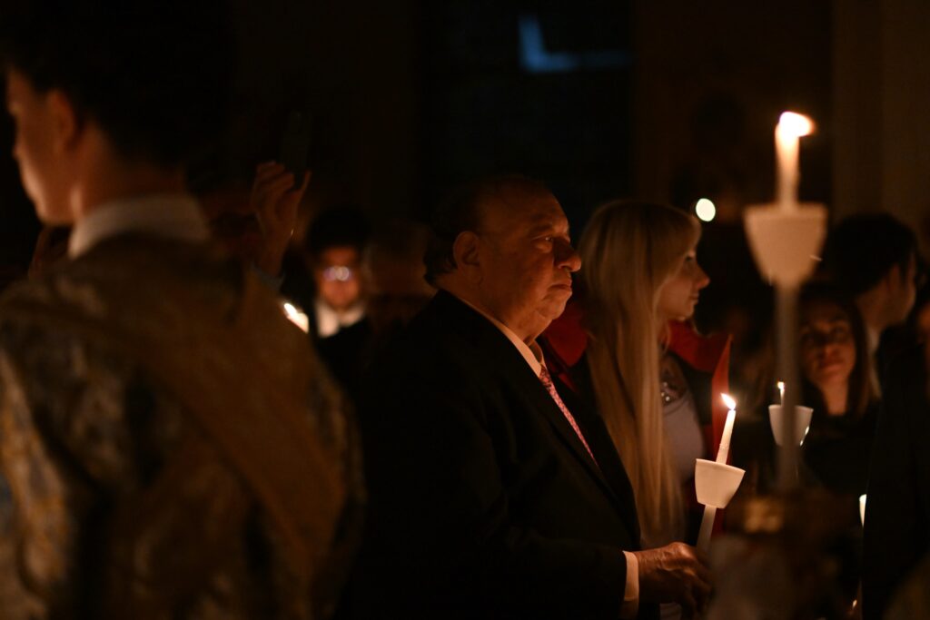 Λίγο πριν τα μεσάνυχτα του Μεγάλου Σαββάτου, κληρικοί και πιστοί συγκεντρώθηκαν στον Αρχιεπισκοπικό Καθεδρικό Ναό της Αγίας Τριάδας στη Νέα Υόρκη, για την Ακολουθία της Ανάστασης, τον Όρθρο και την Ιεραρχική Θεία Λειτουργία του Μεγάλου και Αγίου Πάσχα.