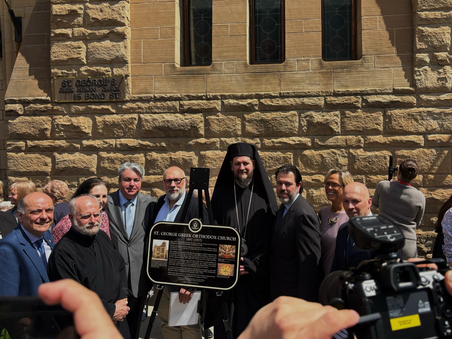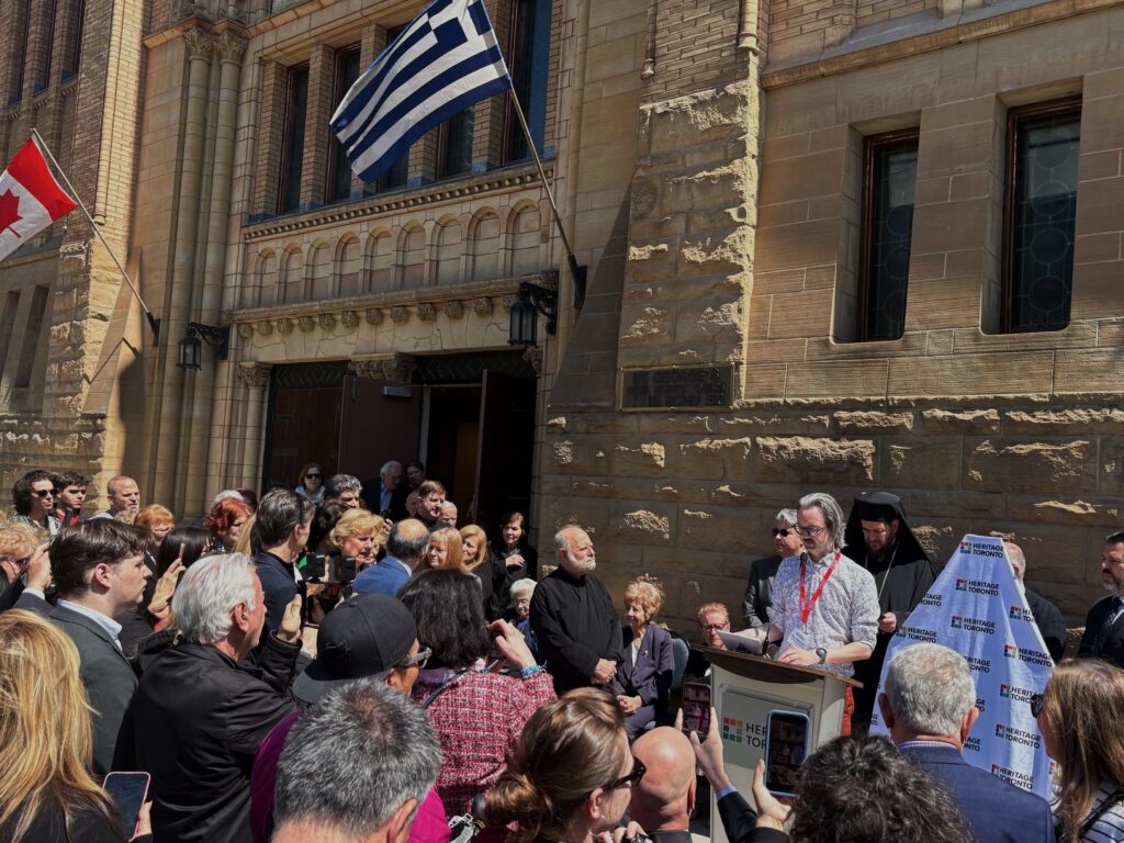Χθες Πέμπτη, το Ίδρυμα Ελληνικής Κληρονομιάς (Hellenic Heritage Foundation), σε συνεργασία με την ενορία της Ελληνικής Ορθόδοξης Εκκλησίας του Αγίου Γεωργίου και τον οργανισμό Heritage Toronto, έκαναν τα αποκαλυπτήρια ιστορικής πλάκας στον Ιερό Ναό που αναγνωρίζει τον ζωτικό ρόλο του ως “καρδιά της πρώιμης ελληνικής κοινότητας του Τορόντο”.