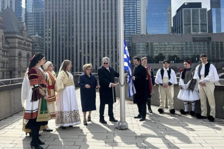 Στο πλαίσιο των εορτασμών της εθνικής επετείου της 25ης Μαρτίου, πραγματοποιήθηκε η τελετή έπαρσης της Ελληνικής Σημαίας στο Δημαρχείο του Τορόντο, παρόντος του Γενικού Προξένου της Ελλάδας Ιωάννη Χατζαντωνάκη, της Προέδρου Μπέτυς