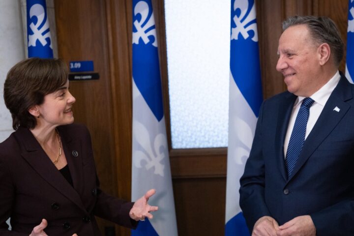 Την Τρίτη, ο ο απερχόμενες Πρωθυπουργός του Κεμπέκ Φρανσουά Λεγκώ (Legault) υποδέχτηκε τη διάδοχό του, Κριστίν Φρεσέτ (Fréchette), στο κτίριο Honoré-Mercier στο Κεμπέκ για την παράδοση της εξουσίας. Η Fréchette — η